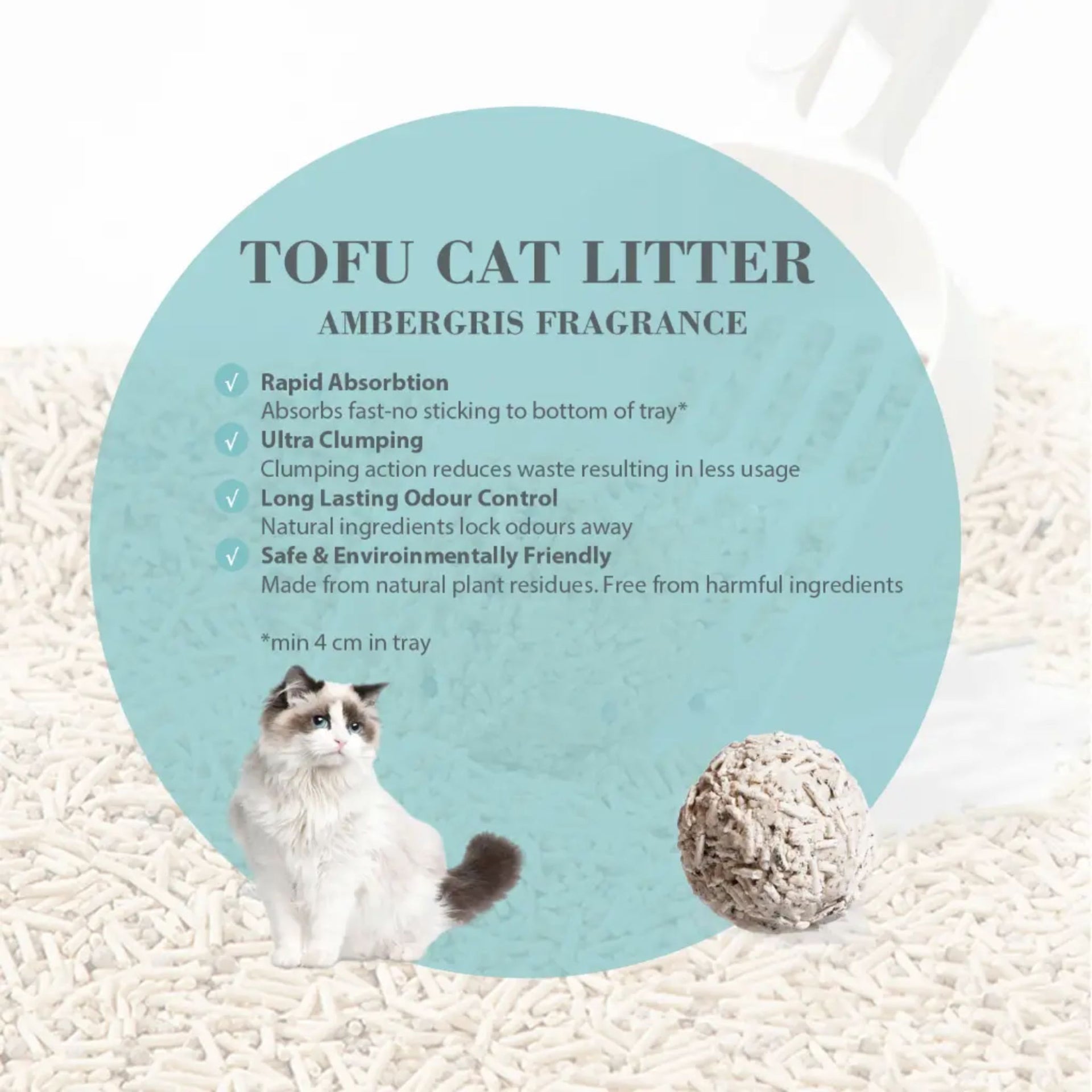 Bioline Tofu Cat Litter with Ambergris fragrance offers superior performance for your cat's litter box. Crafted from natural plant residues, this litter provides rapid absorption, ultra clumping, and long-lasting odor control, ensuring a clean and fresh environment for both you and your cat.