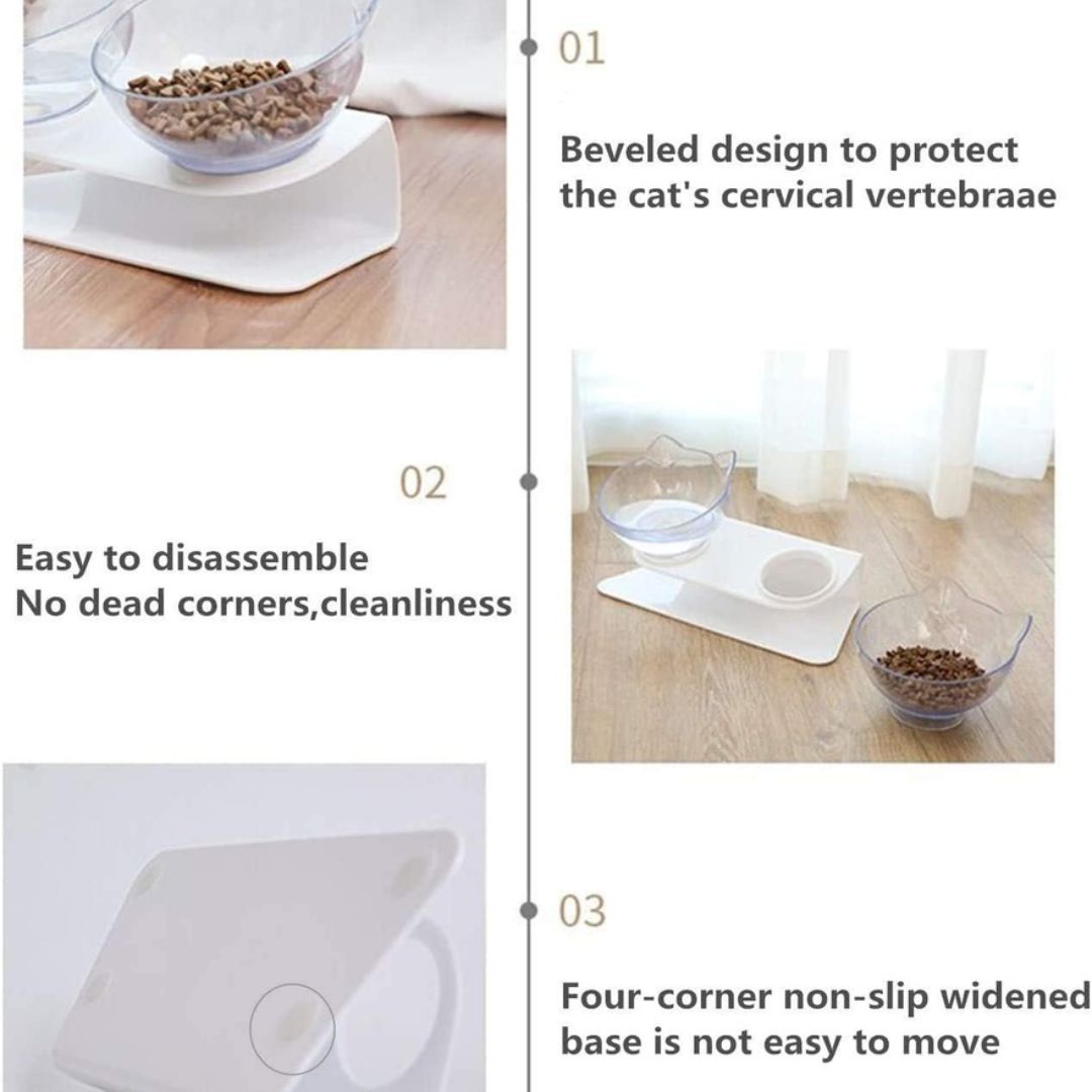 Use one compartment for food and the other for water. Ideal for dry kibble, wet food, or fresh water. Clean regularly with mild soap and rinse thoroughly.