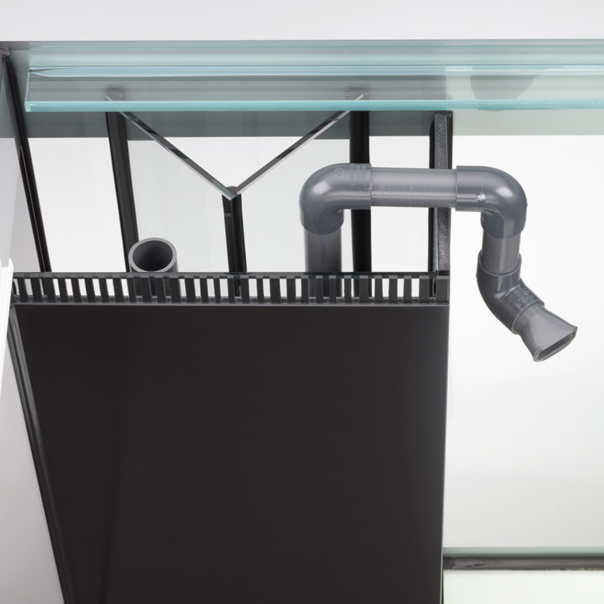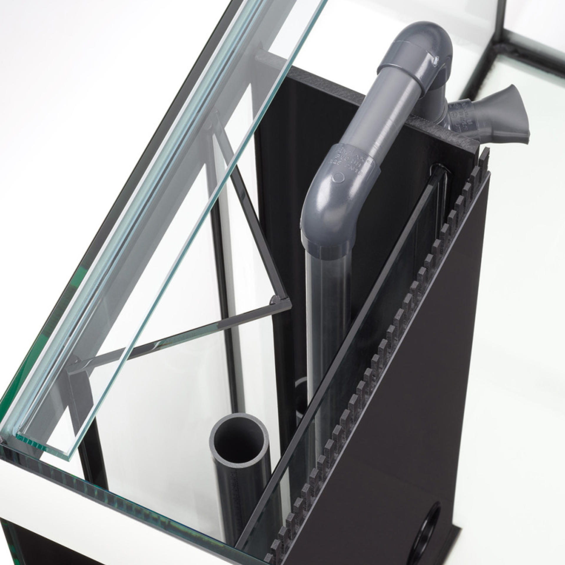 The panes of pure white glass, combined with the specially designed, highly efficient LED lighting, give a clear view of the exotic underwater world. The integrated overflow protection gives additional security and the generous filter sump makes maintenance easy. The system runs quietly due to the patented, noiseless drainage shaft. The EHEIM compactON 3000 return pump is included and all pipework and cables are pre-assembled for ‘plug & play’.