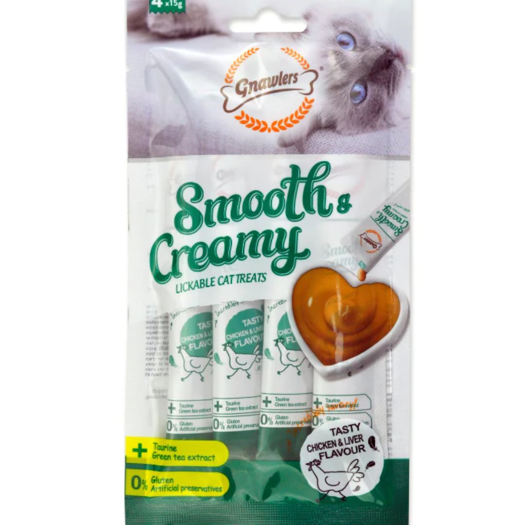 Reward your cat with the rich, meaty taste of Gnawlers Smooth & Creamy Cat Treats – Chicken & Liver Flavor. This silky, lickable snack combines the savoury goodness of chicken and liver with essential nutrients like taurine for eye and heart health, plus green tea extract for natural antioxidant support. With zero gluten and no artificial preservatives, it’s a safe, wholesome way to treat your feline friend.