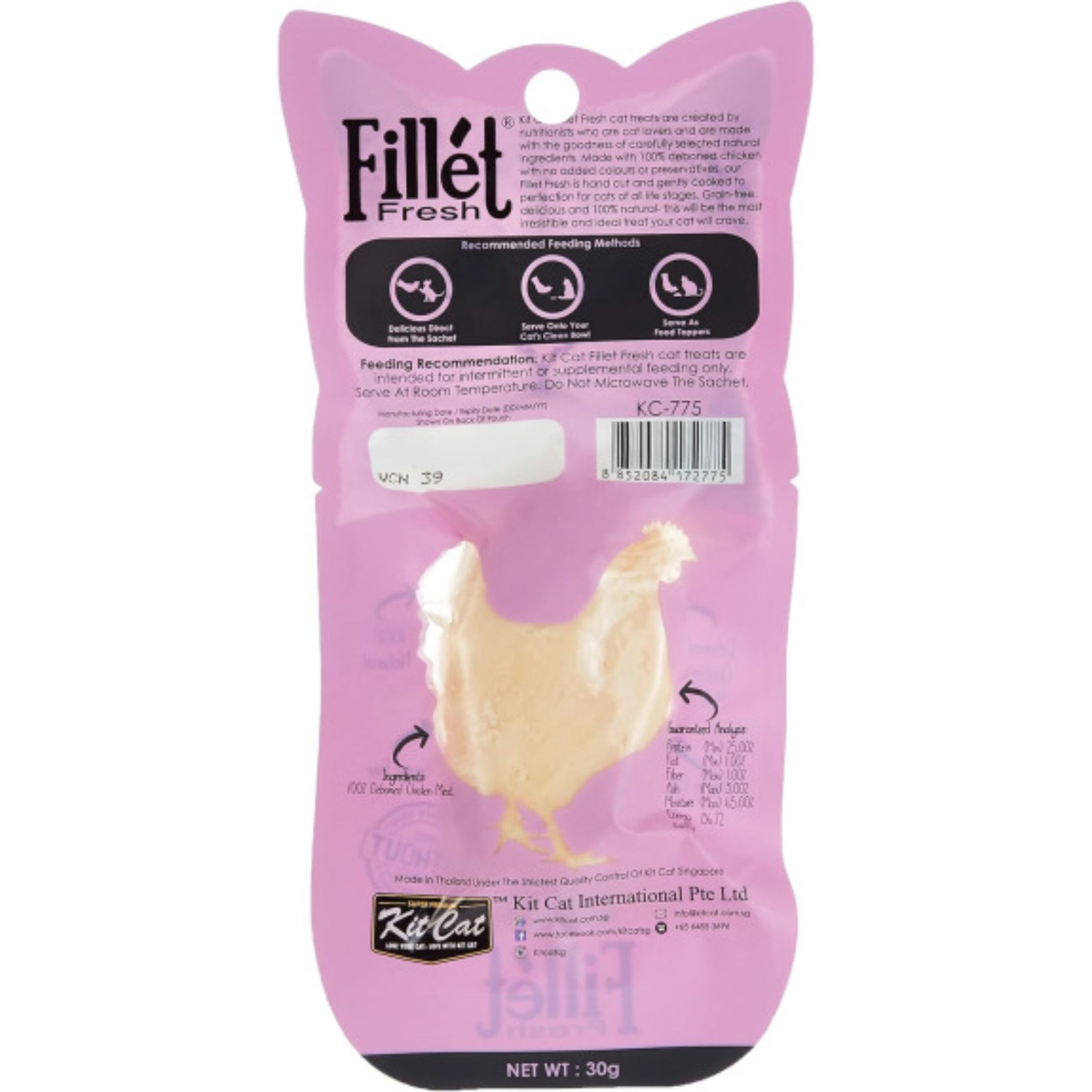 Serve your cat a deliciously wholesome meal with Kit Cat Fillet Grilled Chicken. Made with real, tender grilled chicken, this premium wet food is packed with high-quality protein and natural goodness to support your cat’s everyday health.