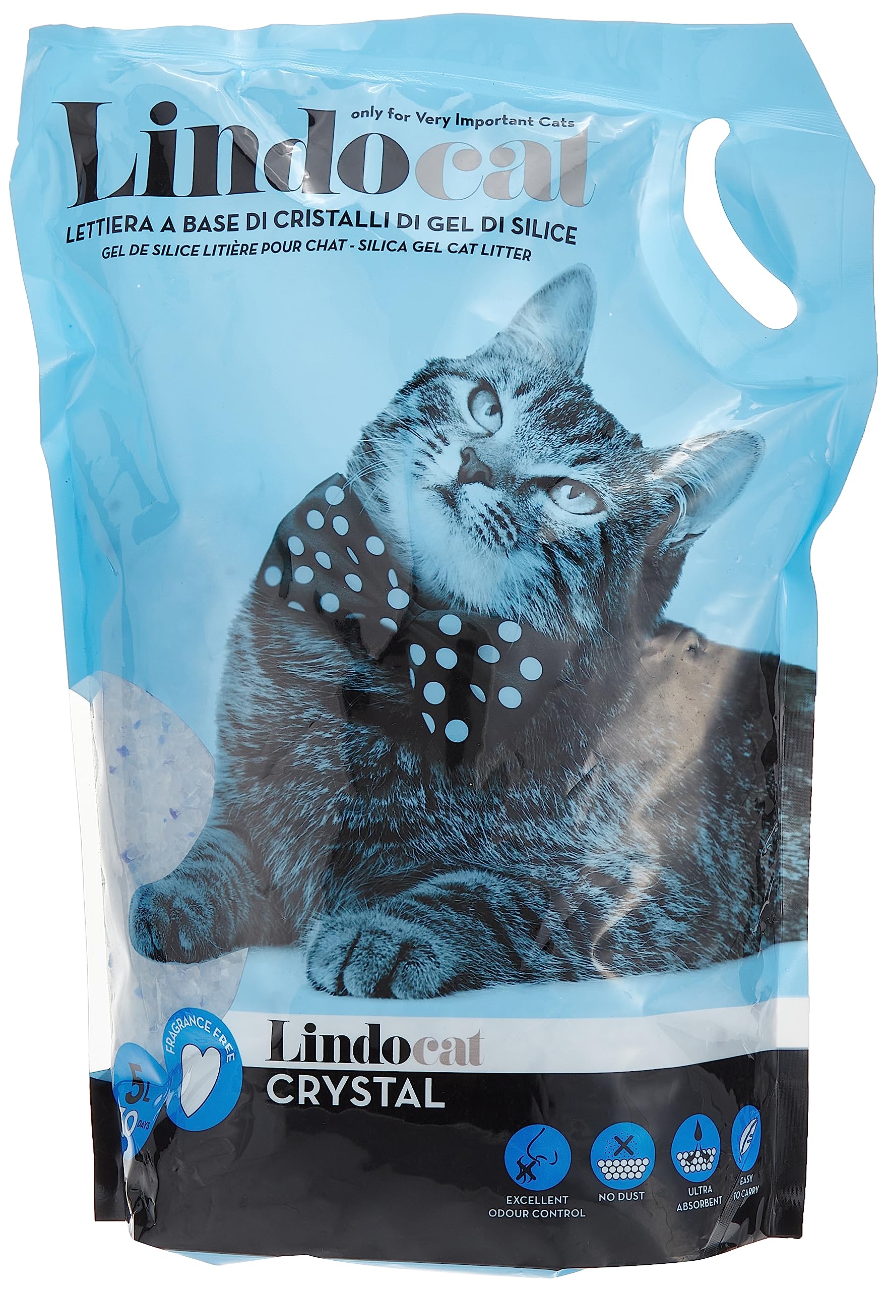 Keep your cat’s litter area clean and dry with Lindocat Crystal – a high-performance silica gel litter designed for superior odor control and moisture absorption. Ideal for households that value hygiene, this 5L pack offers long-lasting freshness with minimal maintenance.