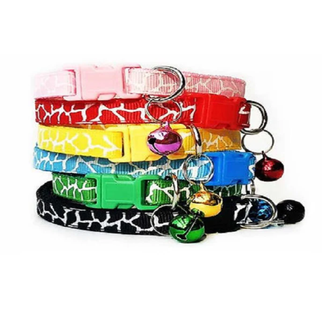 Made from soft, durable nylon webbing with smooth stitched edges. Finished with a breakaway safety buckle and a rust-resistant metal ring for ID tags or bells.