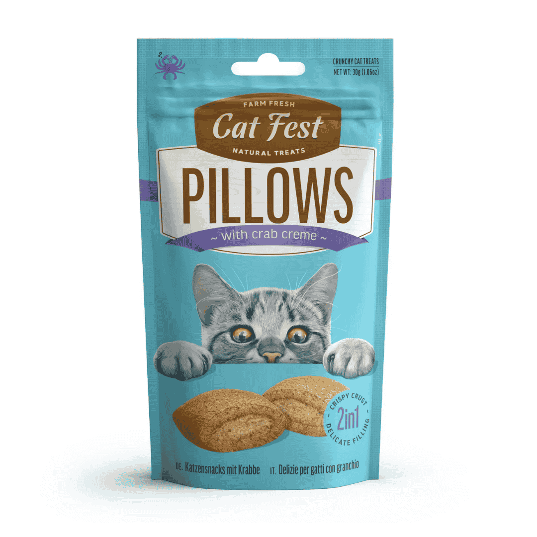 Treat your cat to a gourmet experience with Cat Fest Pillows with Crab Creme – the perfect balance of texture, flavor, and fun!