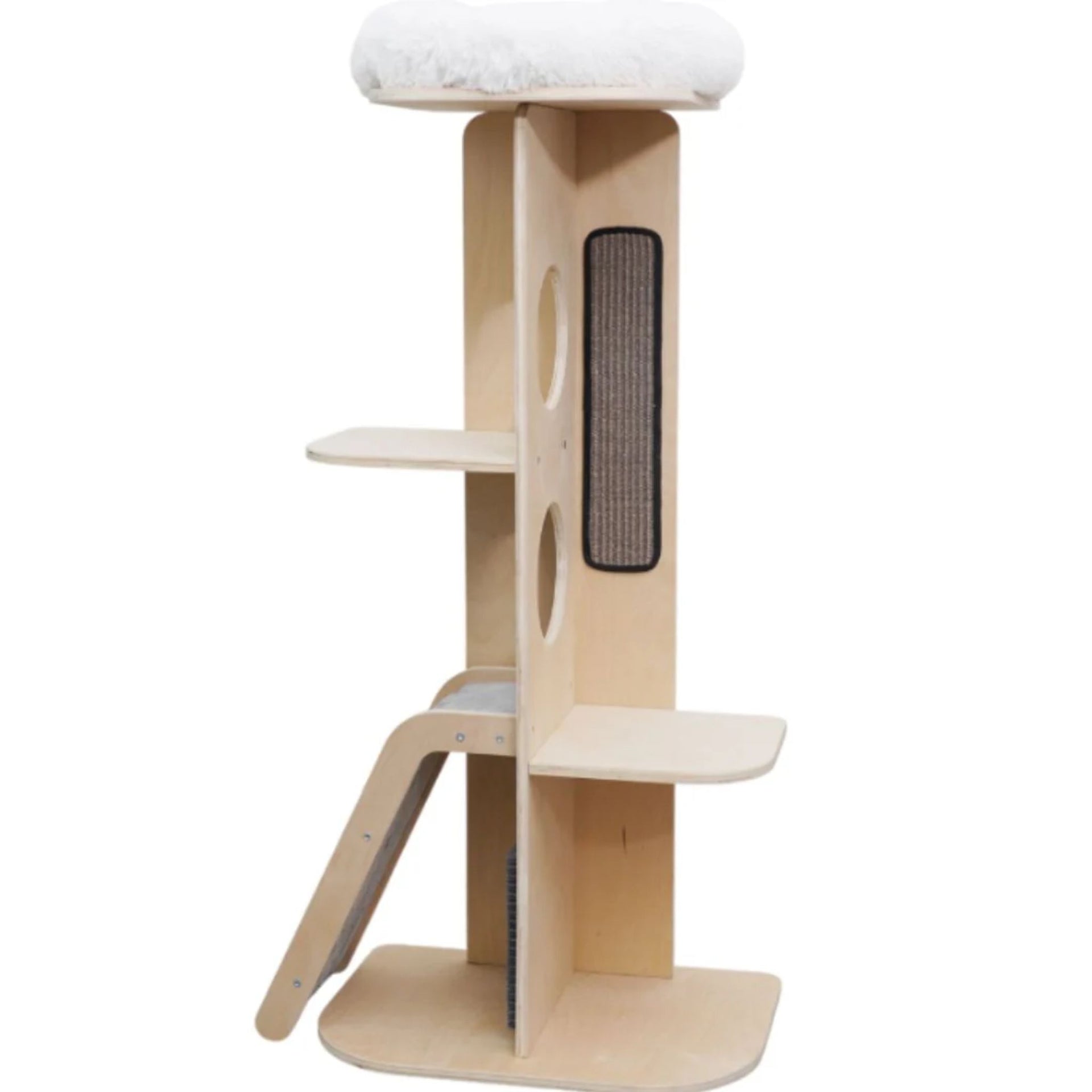 The Catry Cat Tower with Scratcher offers a complete vertical playground for cats to climb, scratch, and relax. Designed with multiple levels, sisal-wrapped posts, and soft resting areas, it supports natural feline behavior while helping keep claws healthy and furniture scratch-free.