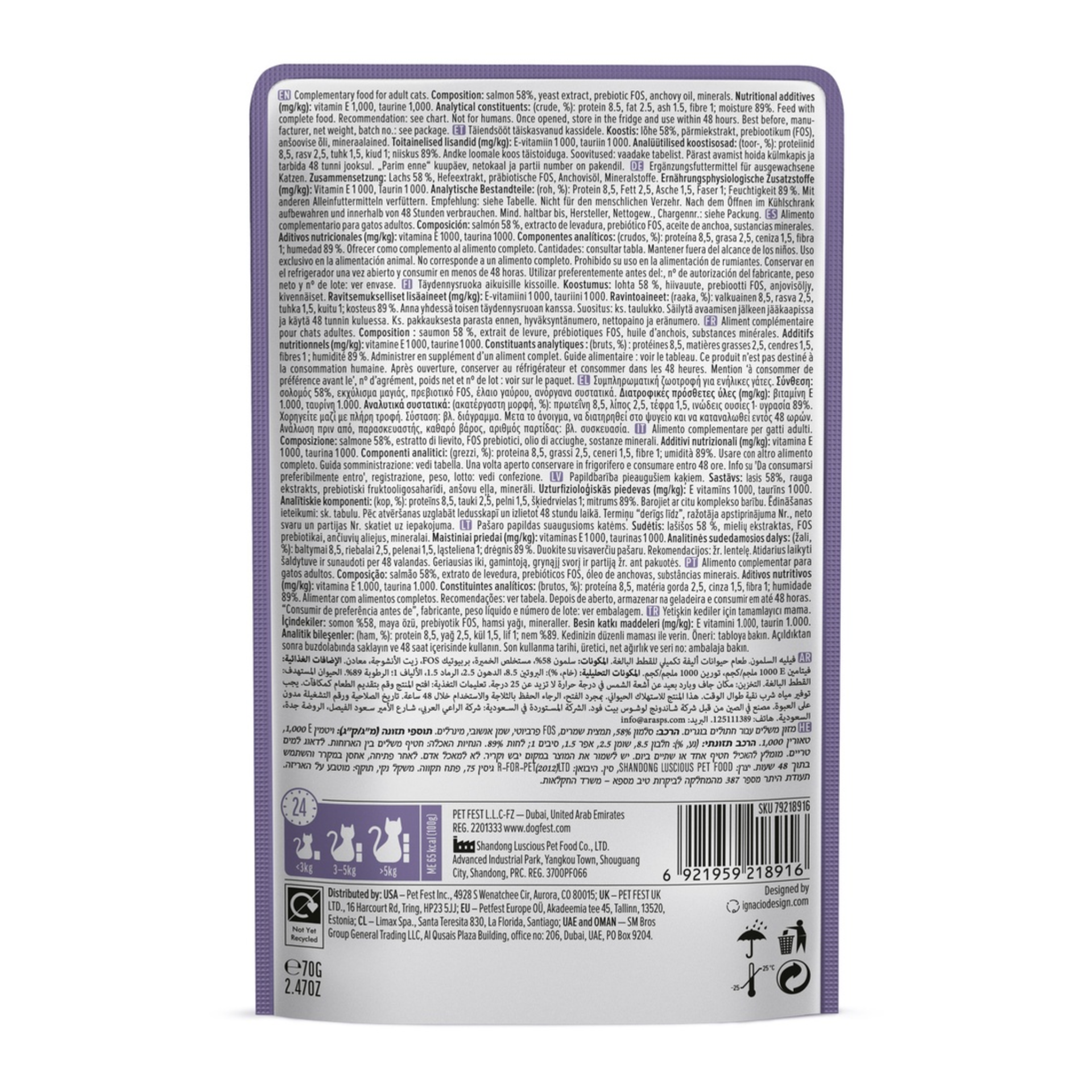 Treat your cat to a gourmet seafood experience with Cat Fest Salmon Fillets in Jelly. Made with real, tender salmon fillets, this premium wet food is served in a delicate jelly that locks in moisture and flavor.