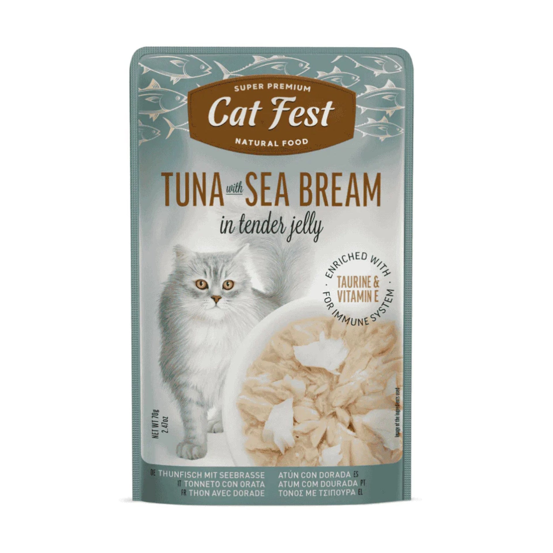 Give your feline friend a taste of the ocean with Cat Fest Tuna with Sea Bream in Tender Jelly – a luxurious blend of premium tuna and delicate sea bream, gently encased in a soft jelly that’s both hydrating and irresistible.