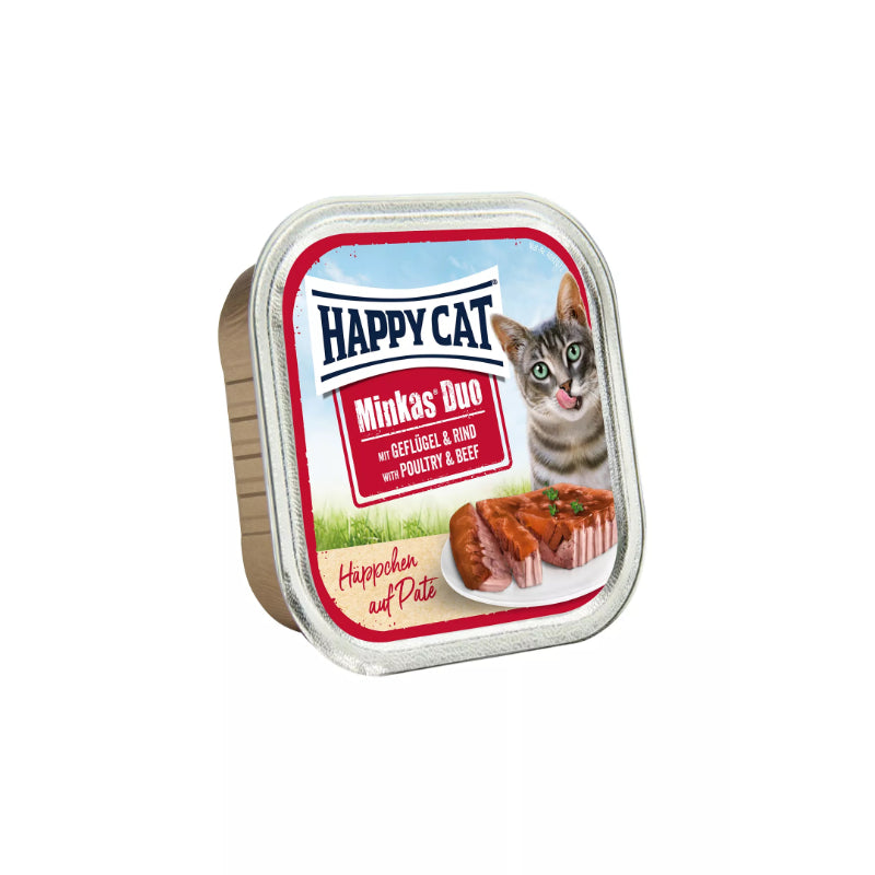 Happy Cat Minkas Duo Poultry & Beef offers a flavorful two-layered wet food made with hearty beef and tender poultry. The combination of fine meat chunks in a soft pâté delivers variety and satisfaction in every bite, perfect for adult cats with a refined palate.