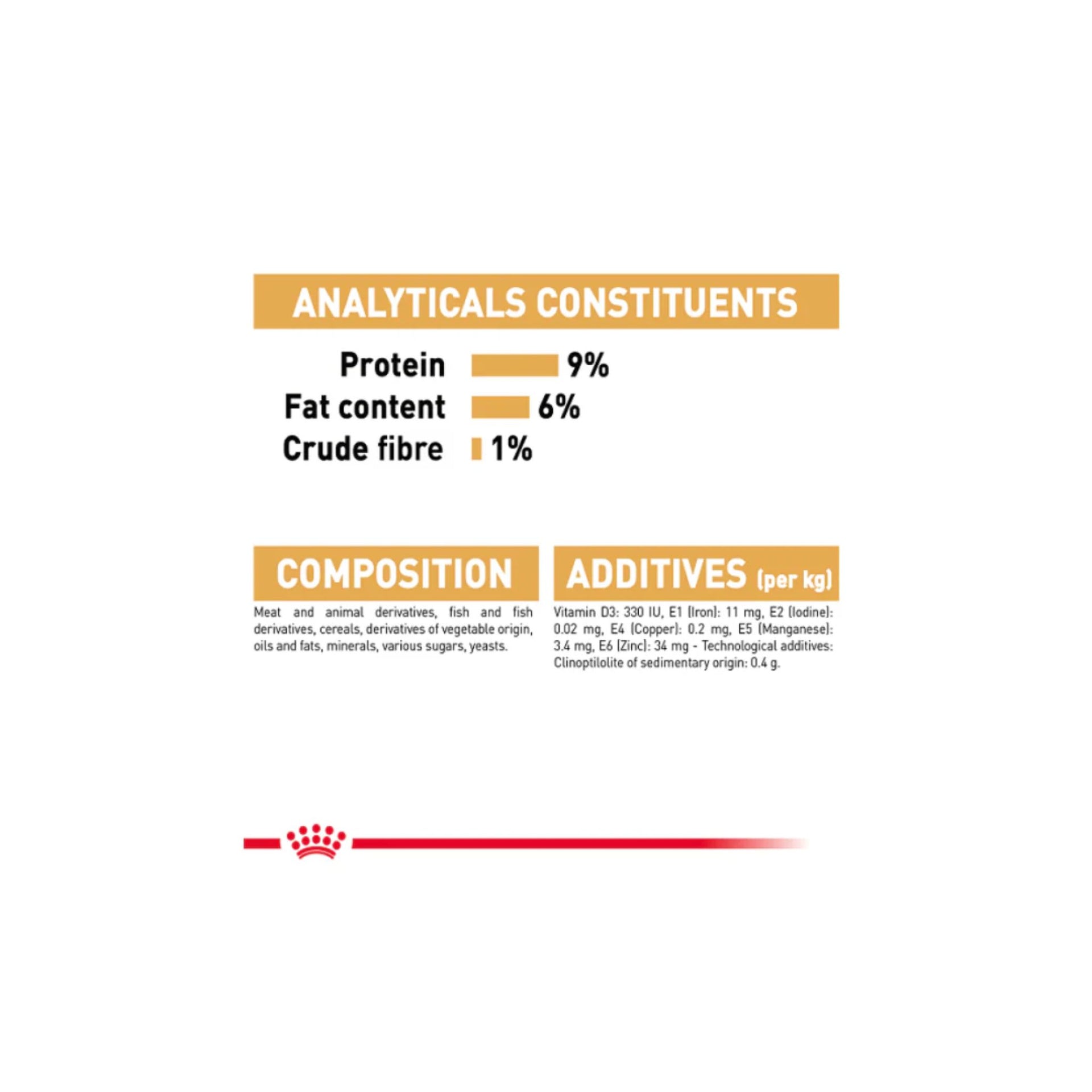 Feed according to the cat’s body weight and activity level. Can be fed alone or mixed with Royal Canin Persian dry food. Always provide fresh drinking water.