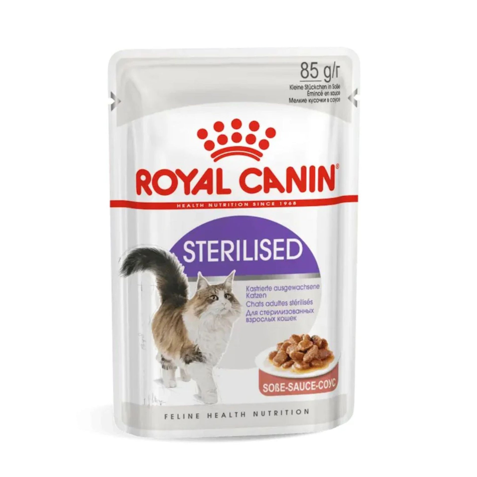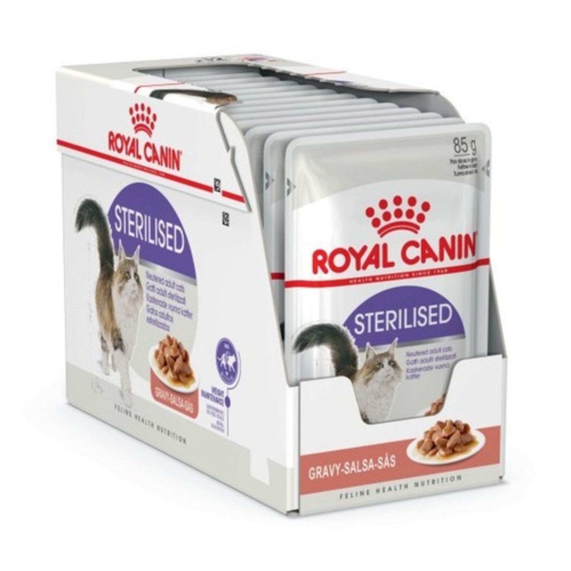 Feed according to your cat’s weight and activity level. Can be served alone or combined with Royal Canin Sterilised dry food. Always ensure fresh drinking water is available.