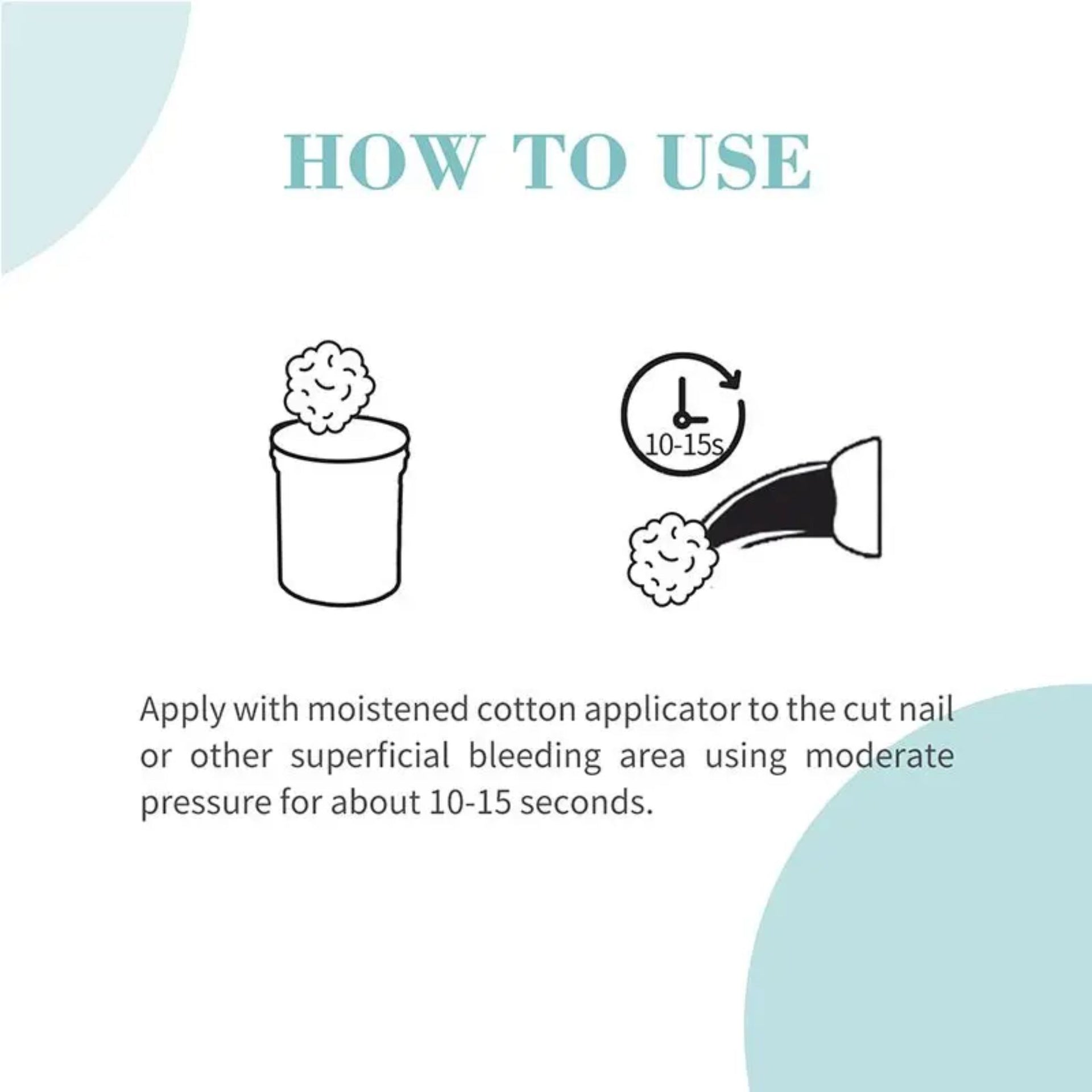 - Application: Use a moistened cotton applicator to apply the powder directly to the cut nail or bleeding area.