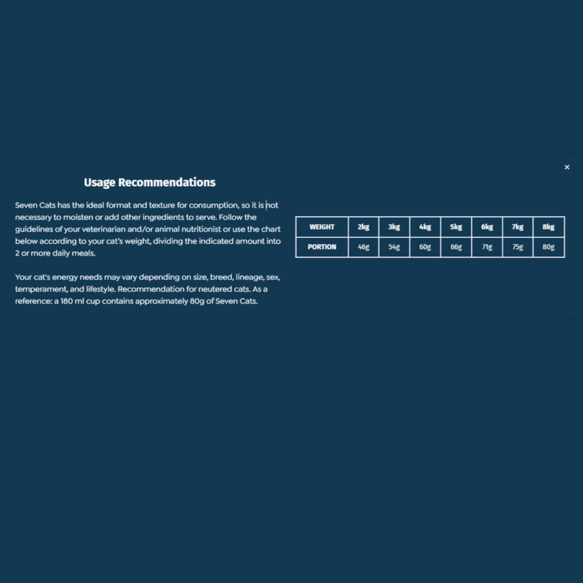 Serve according to the cat age and weight