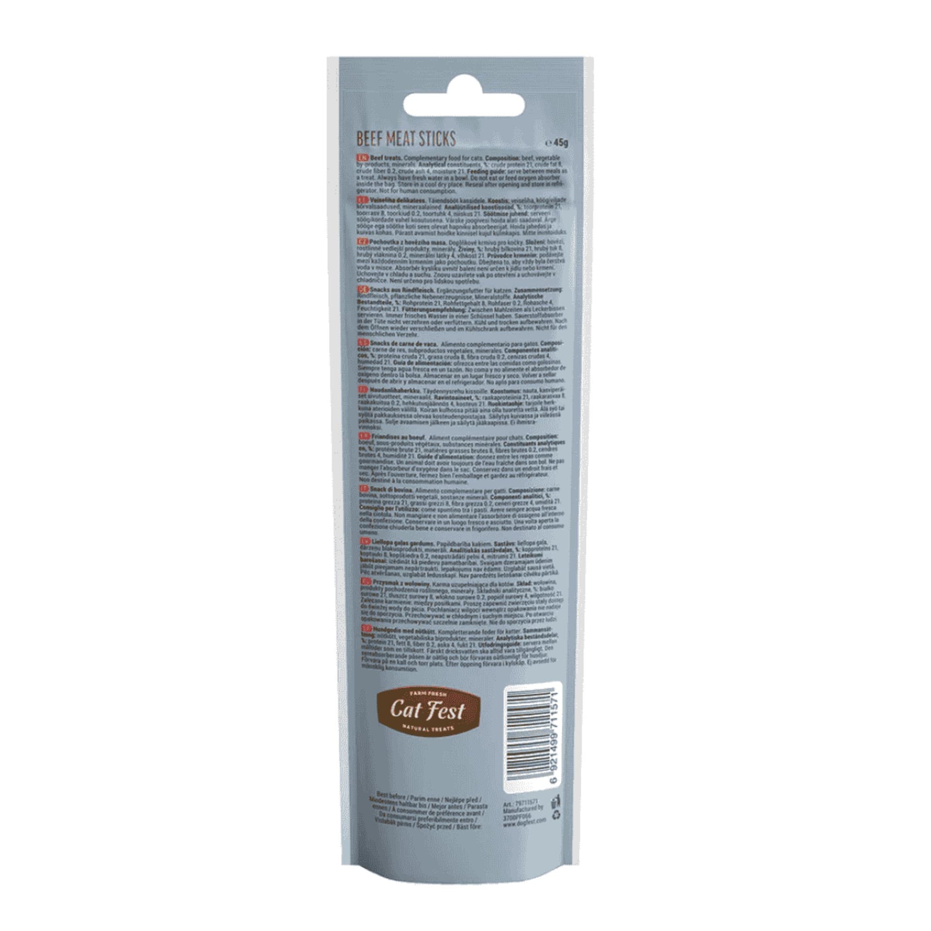 Give your cat a delicious and tender treat with Cat Fest Beef Meat Sticks. Made with real beef and 100% natural ingredients, these chewy meat sticks offer a flavorful and healthy reward that cats love.