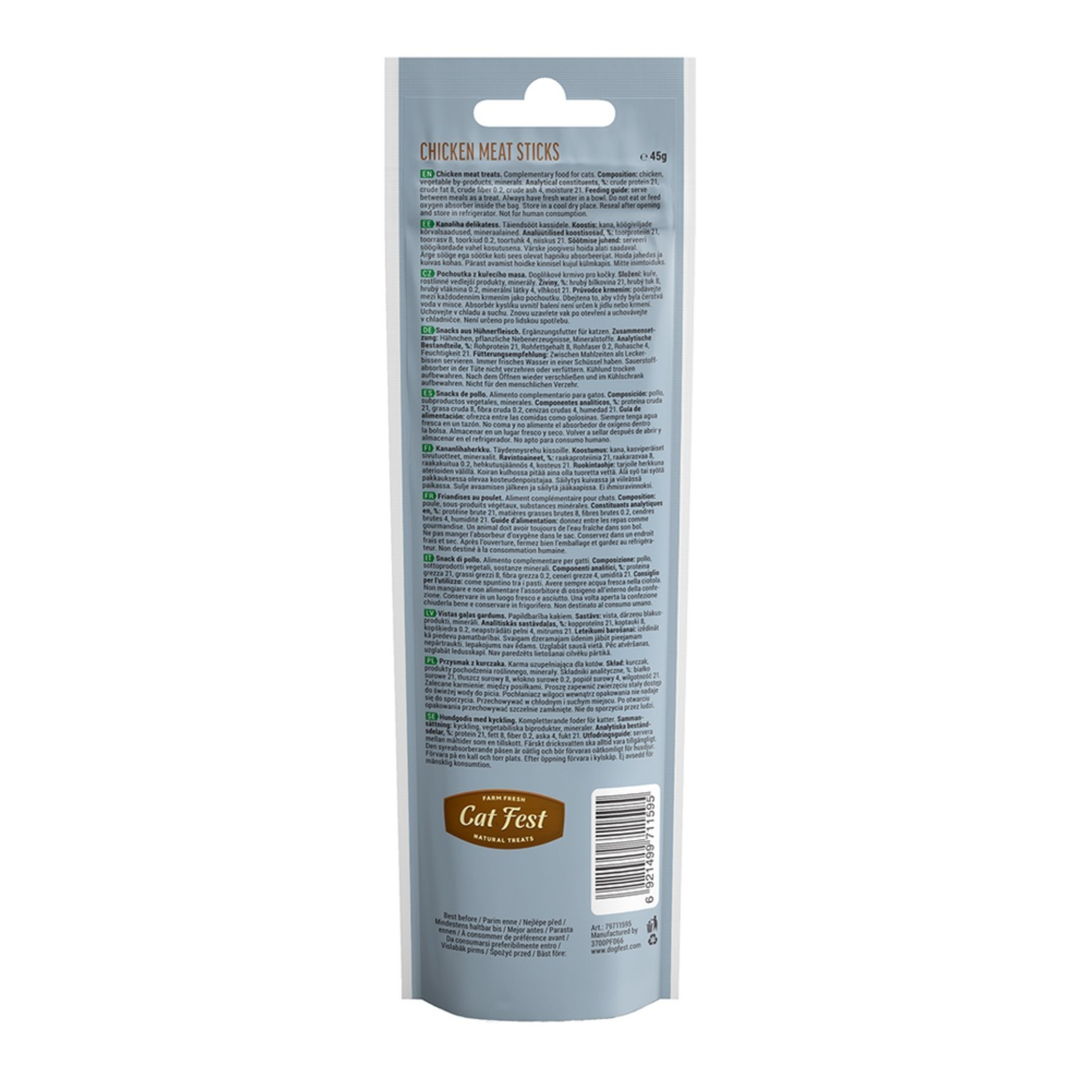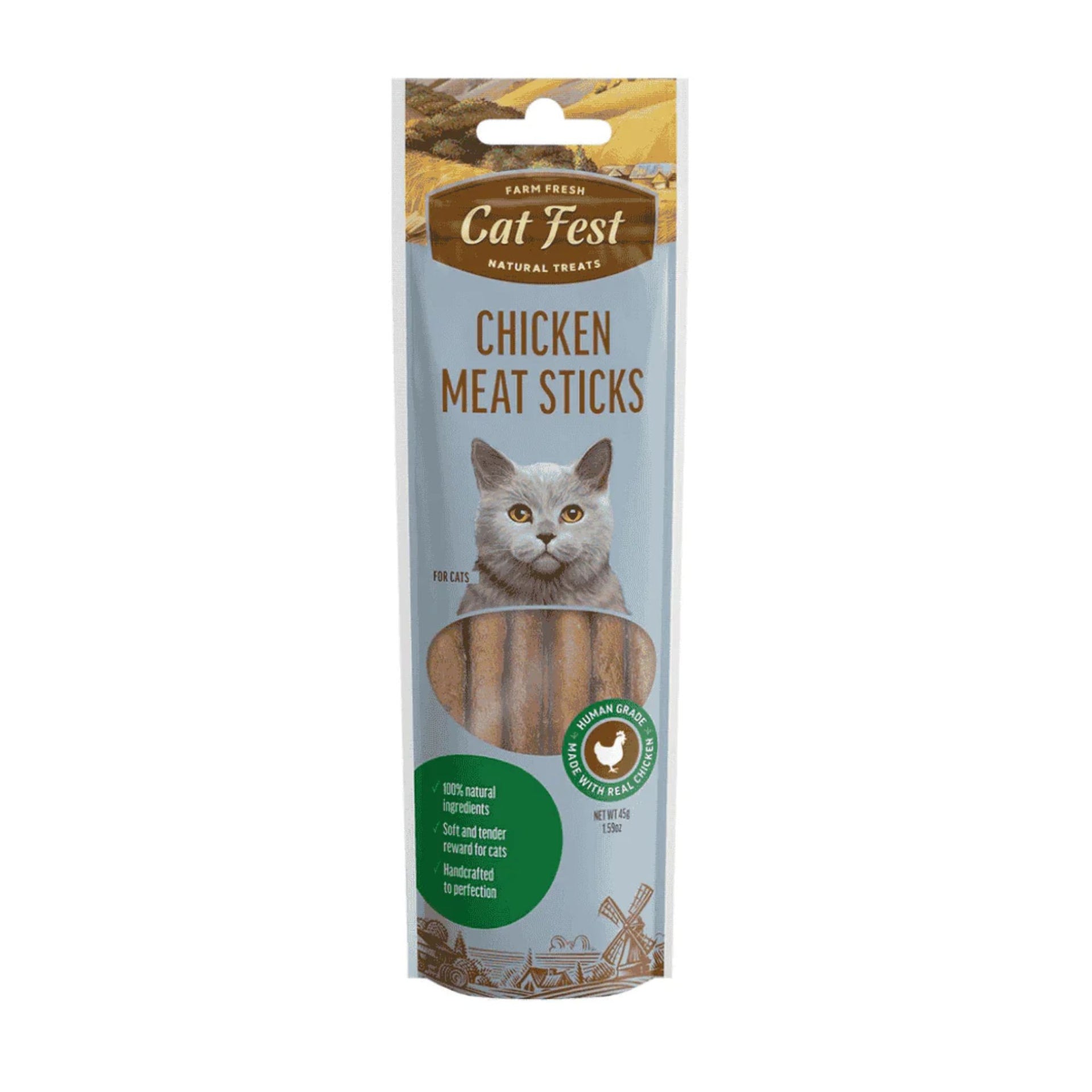 Treat your cat to the wholesome taste of Cat Fest Chicken Meat Sticks — a delicious and chewy protein-packed snack made from real chicken! These meat sticks are crafted with 100% natural ingredients to provide a soft and tender reward your cat will adore.
