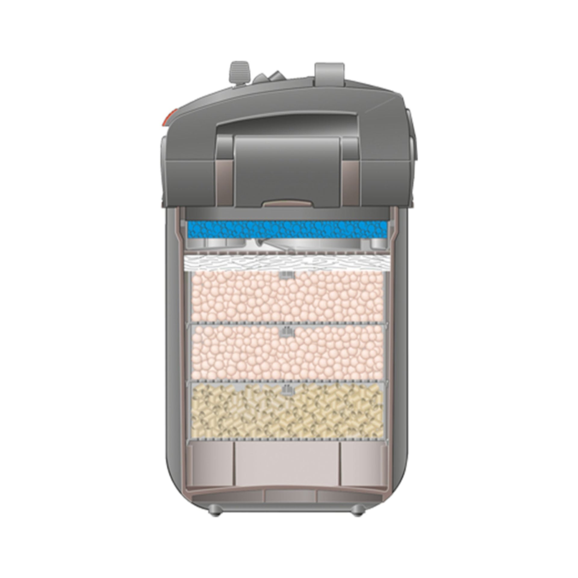 - Large filter volume for maximum biological, mechanical, and chemical filtration