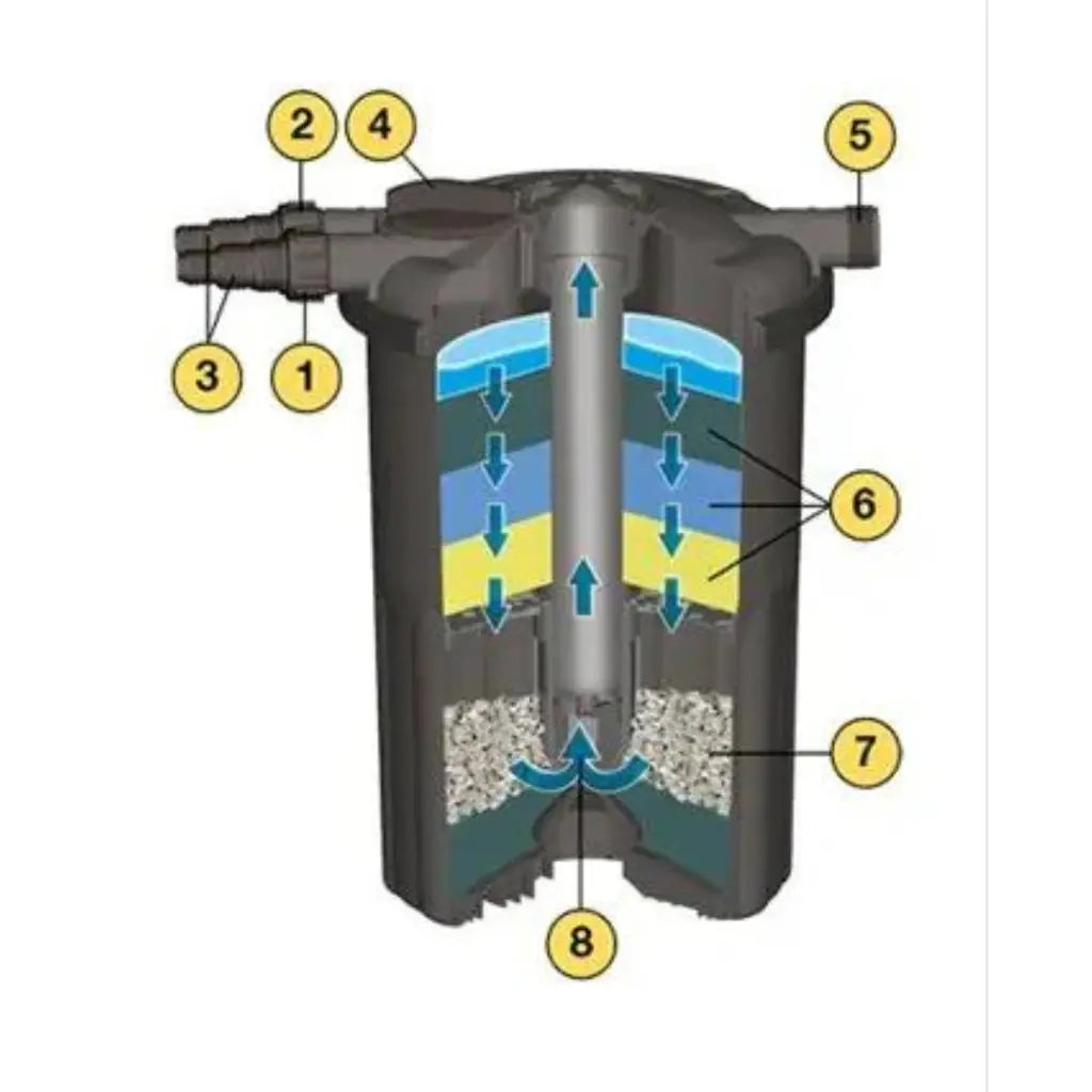 - Complete pond filter set with pump, UVC clarifier, and filter media