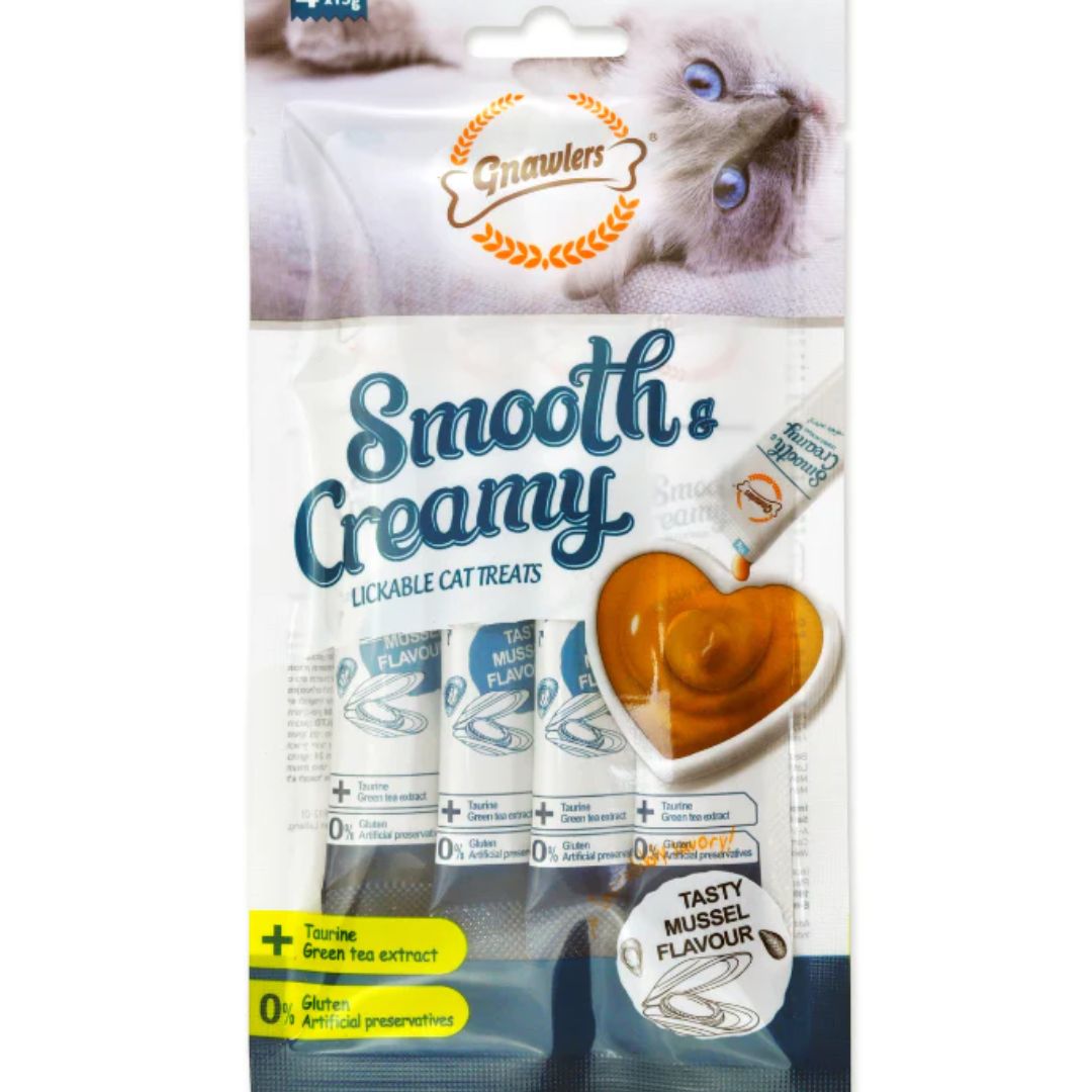 Give your cat a tasty and nutritious reward with Gnawlers Smooth & Creamy Cat Treats. Made with the rich taste of mussel, these silky, lickable treats are fortified with taurine and green tea extract to support overall health. With zero gluten and no artificial preservatives, they’re a safe and wholesome indulgence for cats of all ages.