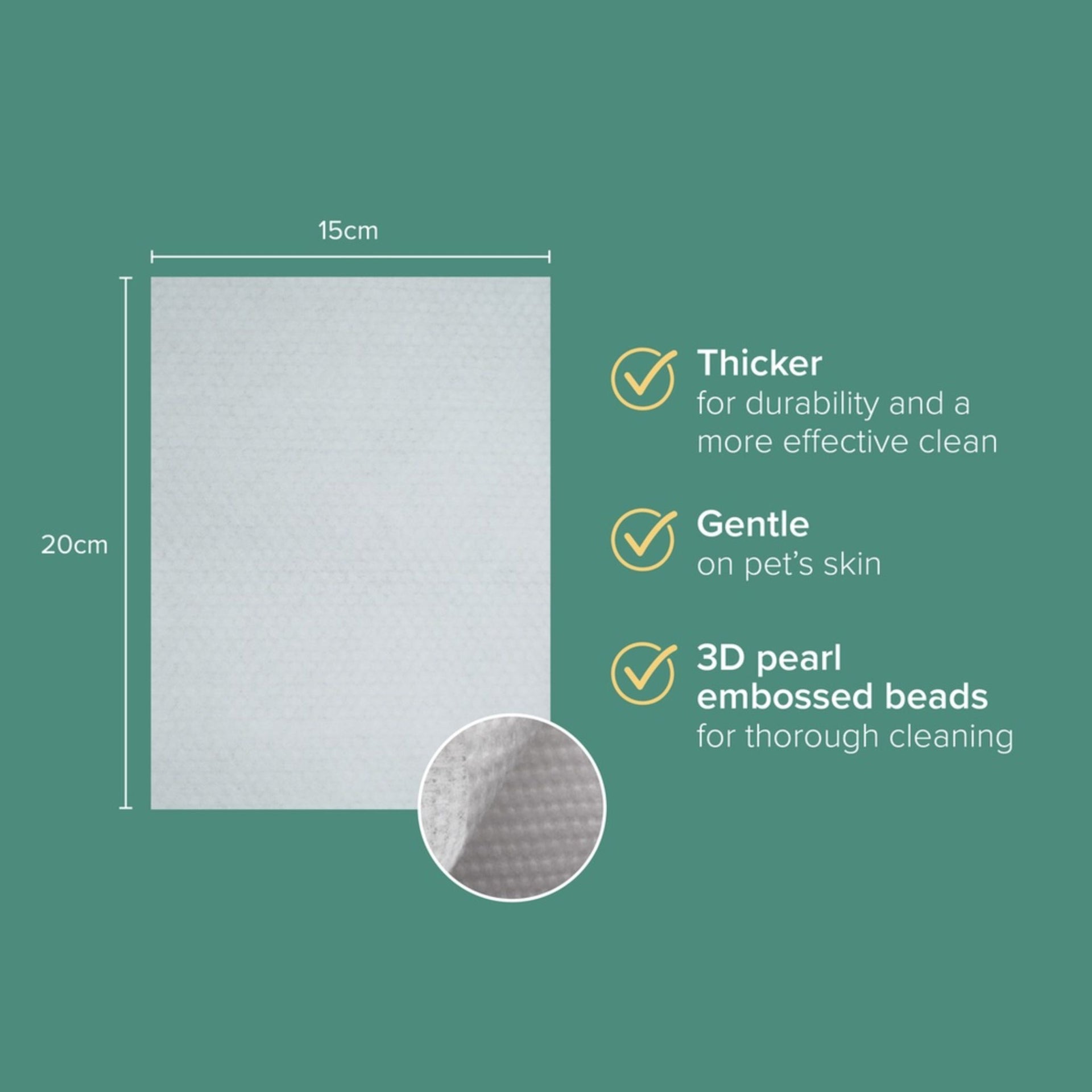 High-quality, ultra-soft non-woven fabric that holds moisture well and glides smoothly over fur without snagging.