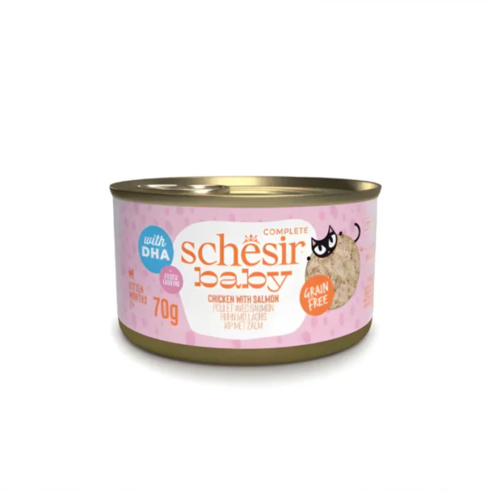 Support your kitten’s early growth with Schesir Baby Kitten Chicken & Salmon Wet Food. Designed for kittens from 2 months, this grain-free recipe blends tender chicken with flavorful salmon, delivering a complete, balanced meal rich in essential nutrients. Its smooth texture makes it easy for little ones to enjoy, while DHA and taurine help promote brain development and vision health.