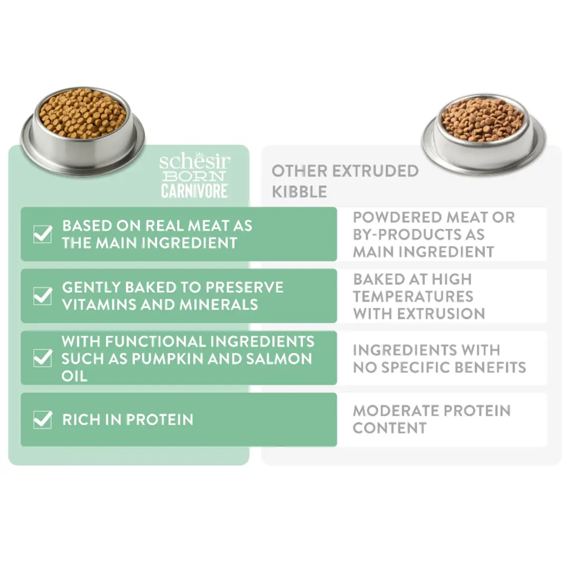 This recipe answers the needs of pet owners seeking high-protein, low-carb dry food that closely matches a cat’s natural dietary habits, with the added benefit of gentle oven baking for exceptional taste and nutrient retention.
