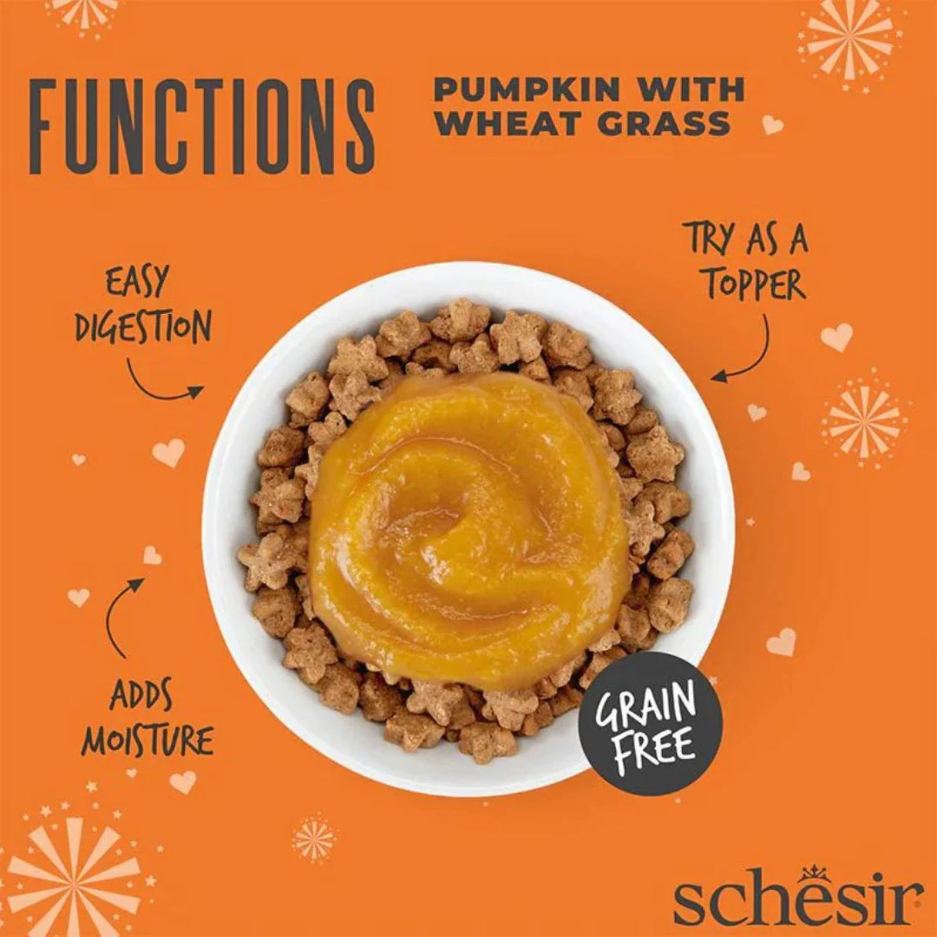 Schesir Digestive Topper with Pumpkin & Wheat Grass is a natural, plant-based topper designed to gently support your cat’s digestive health. Made with fibre-rich pumpkin and wheat grass, this functional blend helps regulate digestion and promote natural intestinal movement. Serve on top of wet or dry food to enhance texture, flavour, and gut support—without artificial additives.