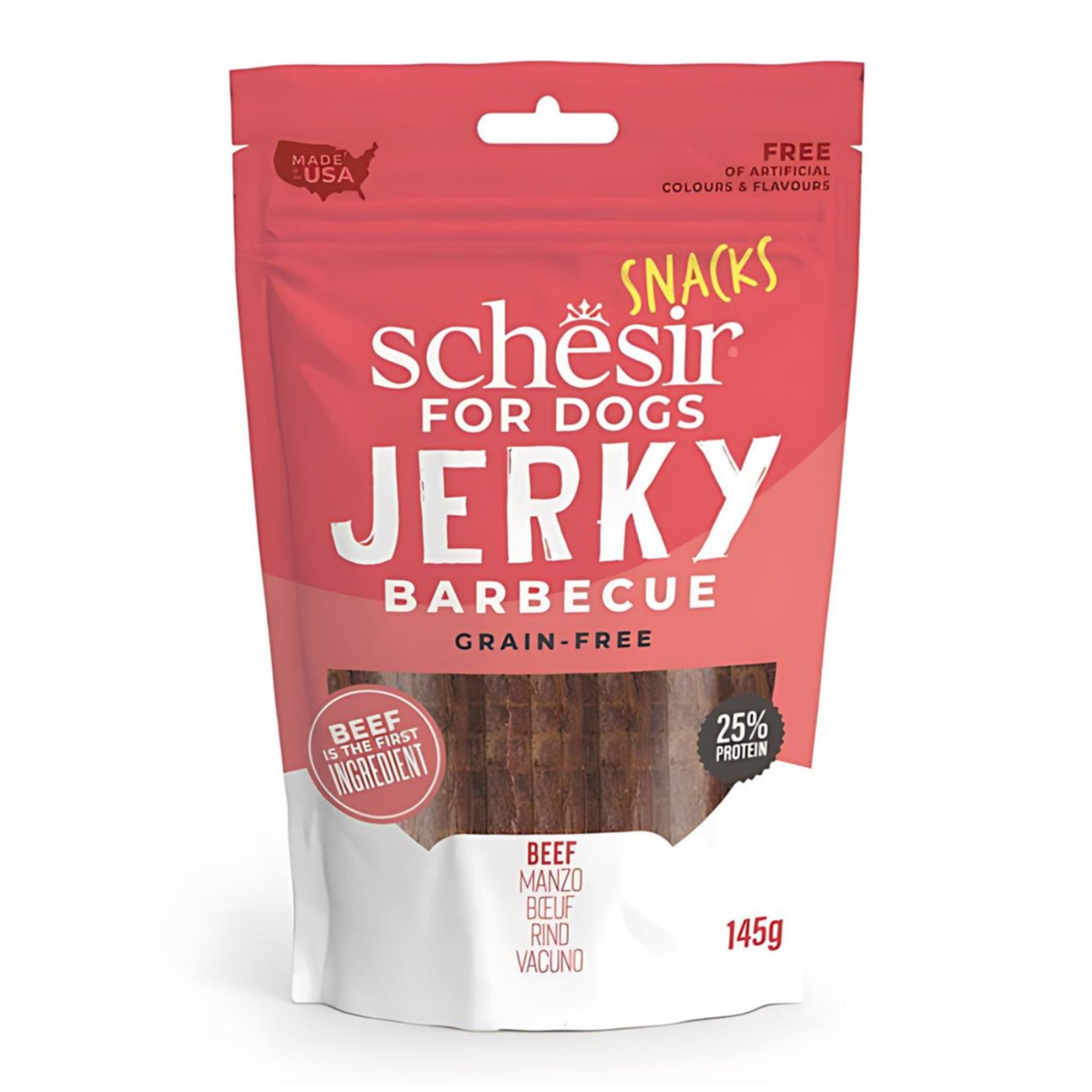Schesir BBQ Beef Jerky is a grain-free, protein-rich treat crafted with real beef and a smoky barbecue flavour dogs love. Gently air-dried to preserve taste and texture, these soft jerky strips are free from grains, artificial colours, and preservatives—making them a wholesome choice for sensitive dogs or those on limited-ingredient diets.