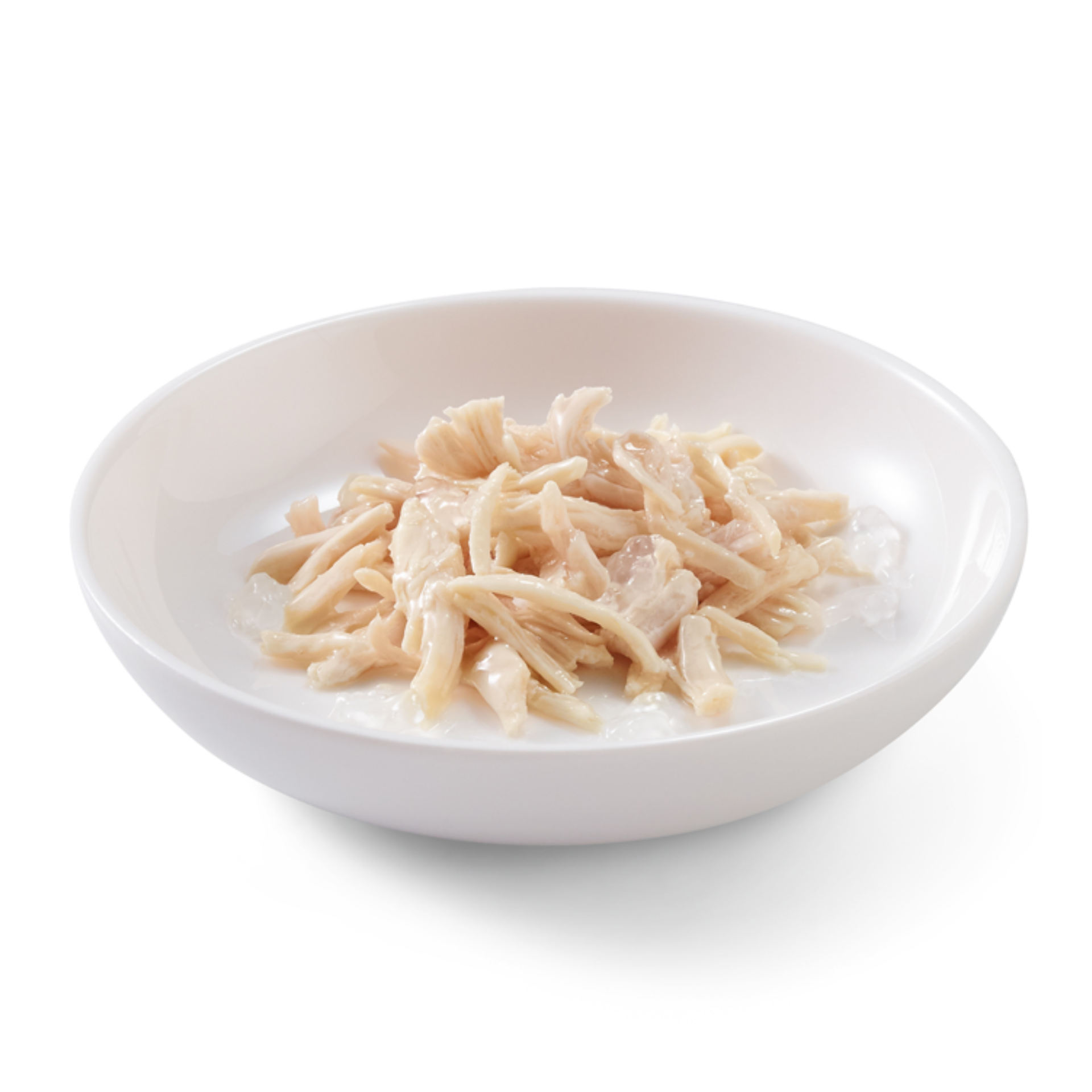 Chicken (min. 45%), rice (1.4%), chicken broth, natural gelling agents, sunflower oil, vitamins, minerals, taurine.