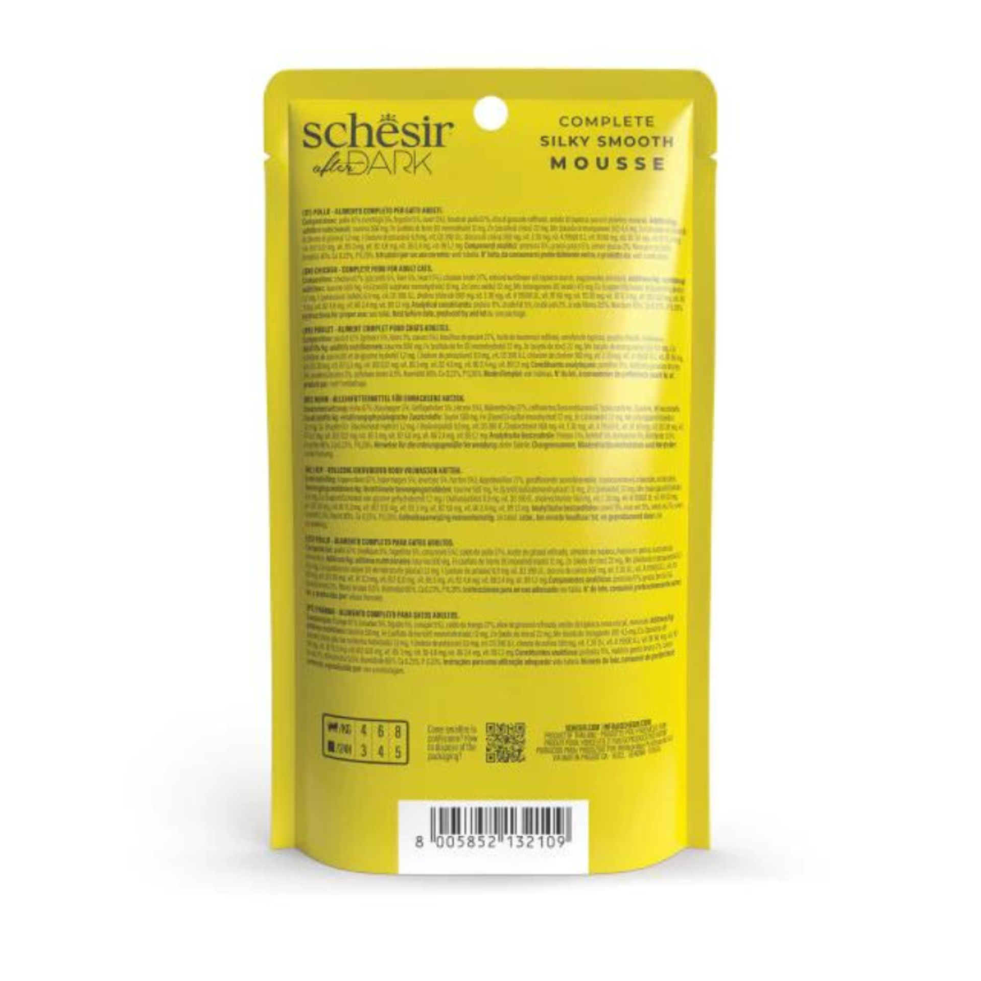 Give your adult cat a nutritious and satisfying meal with Schesir After Dark Velvet Mousse – Chicken. This complete and balanced wet food features a super smooth mousse texture and is packed with quality animal protein from chicken and nutrient-rich organ meats.