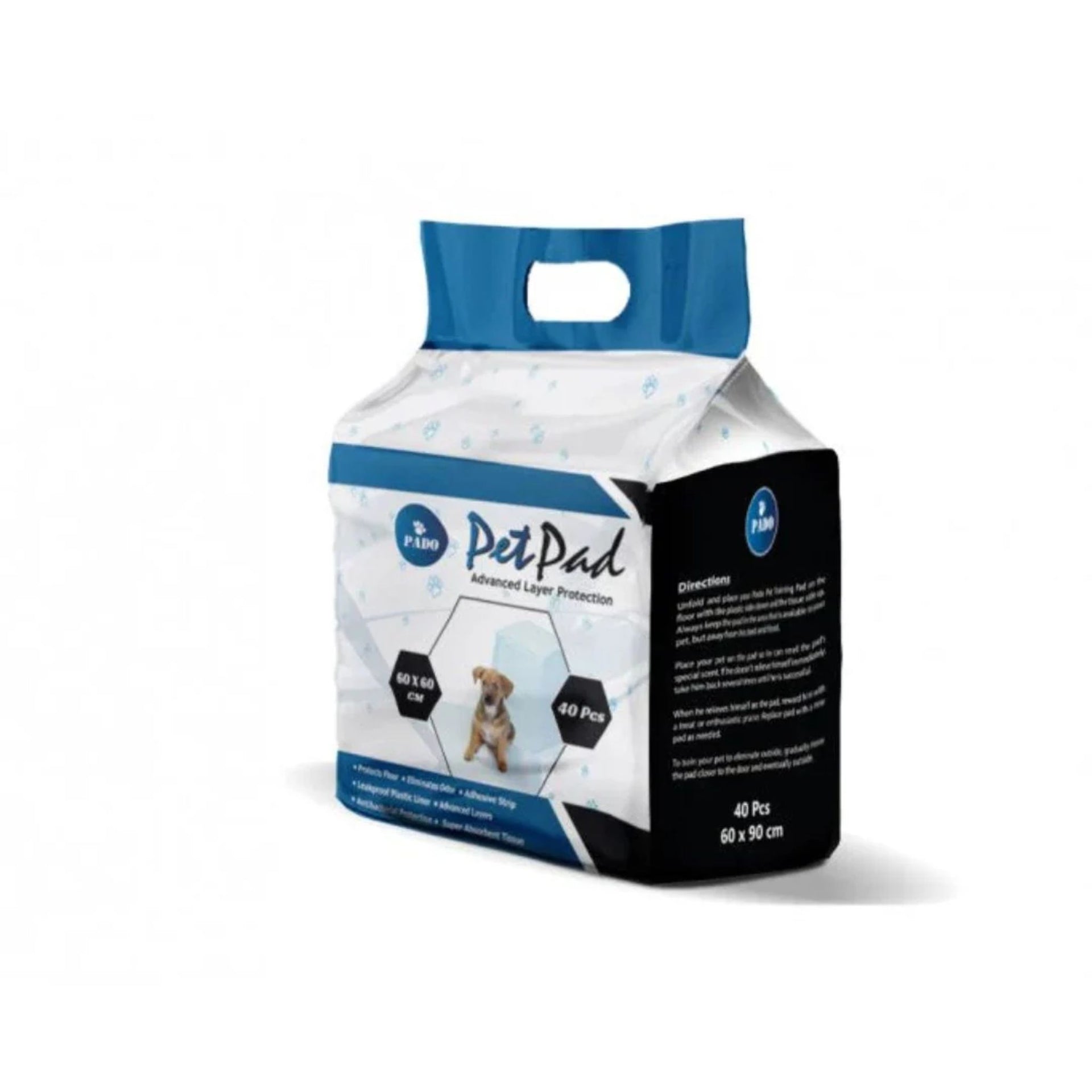 Designed for everyday protection, the Pado Pet Pad with Advanced Layer technology offers reliable absorbency and mess control for puppies, senior dogs, and indoor pets. Each pad features multiple layers to lock in moisture and neutralize odor—keeping floors dry and clean.