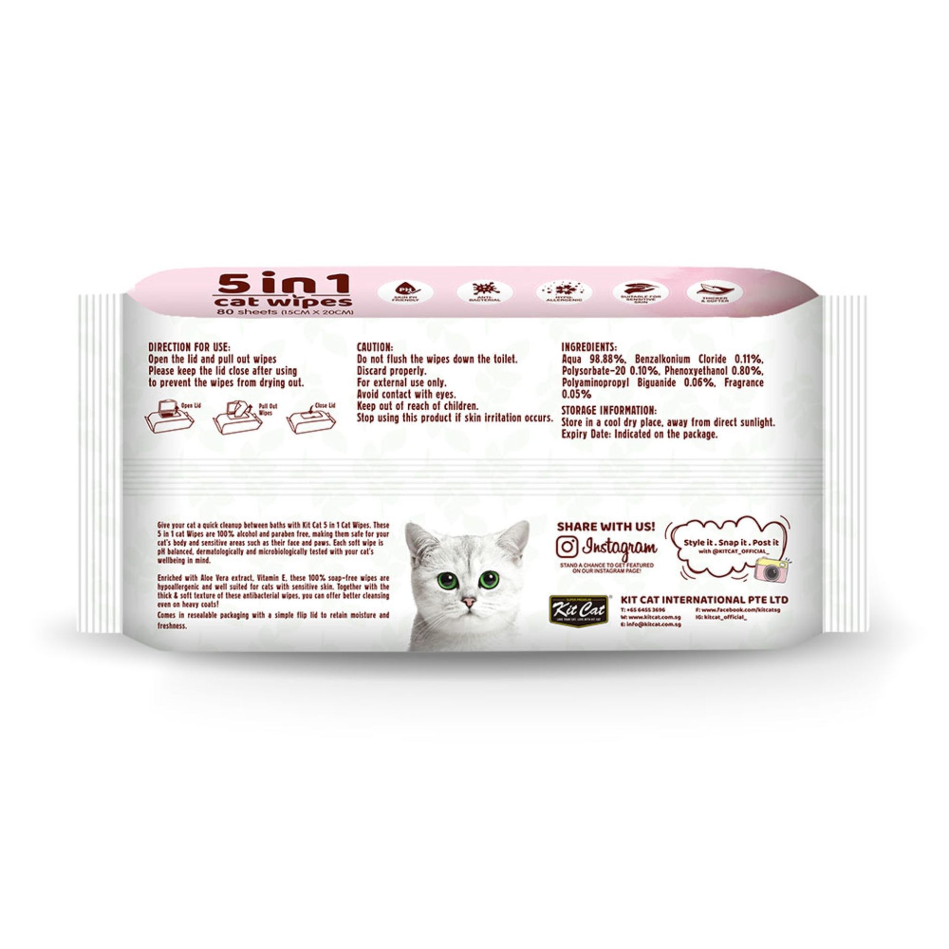 Kit Cat 5-in-1 Coconut Scented Cat Wipes are specially designed to keep your feline fresh, clean, and pampered. Enriched with aloe vera and vitamin E, these alcohol-free wipes provide a safe and soothing clean from nose to tail.