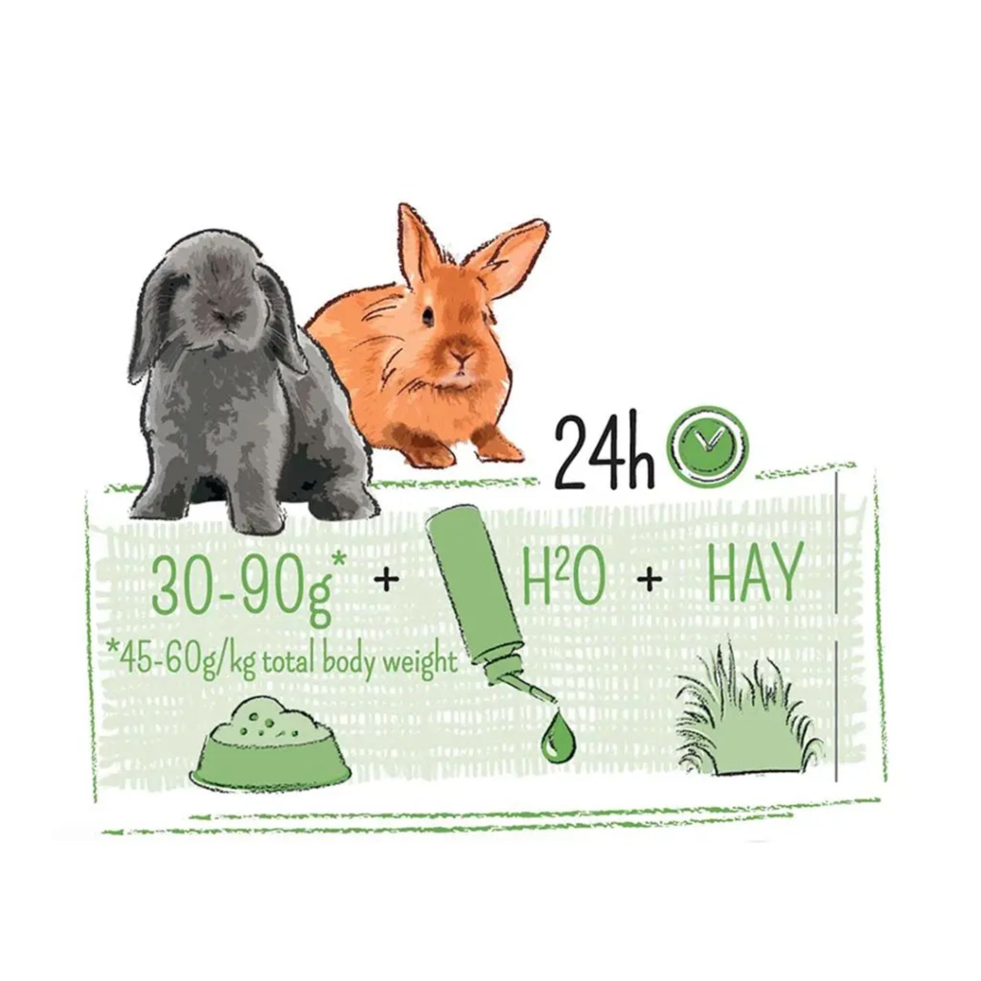 Feed daily according to your rabbit’s weight and age. Always provide fresh hay and clean drinking water. Introduce new foods gradually.