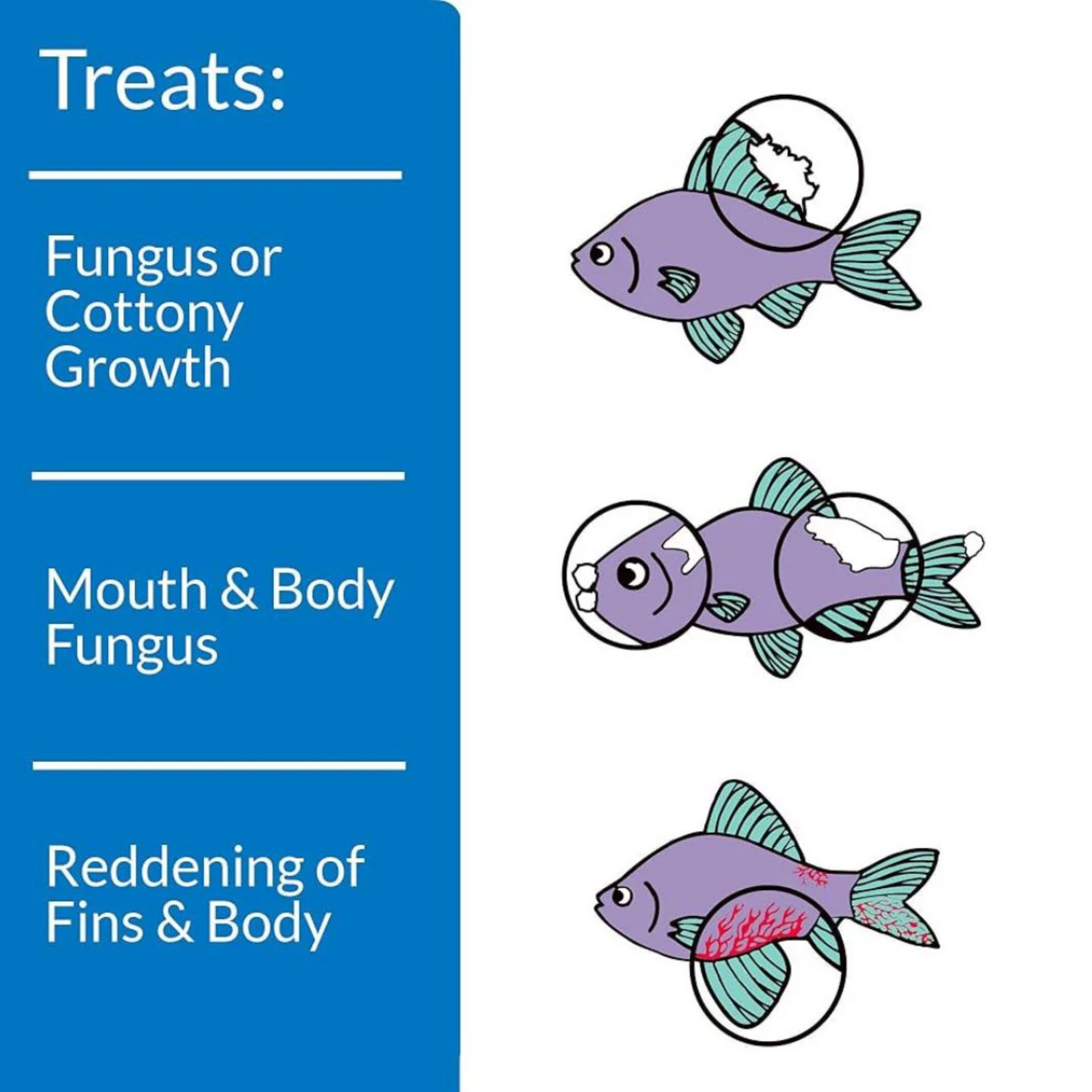 - Helps treat mild bacterial infections, fin rot, and mouth fungus