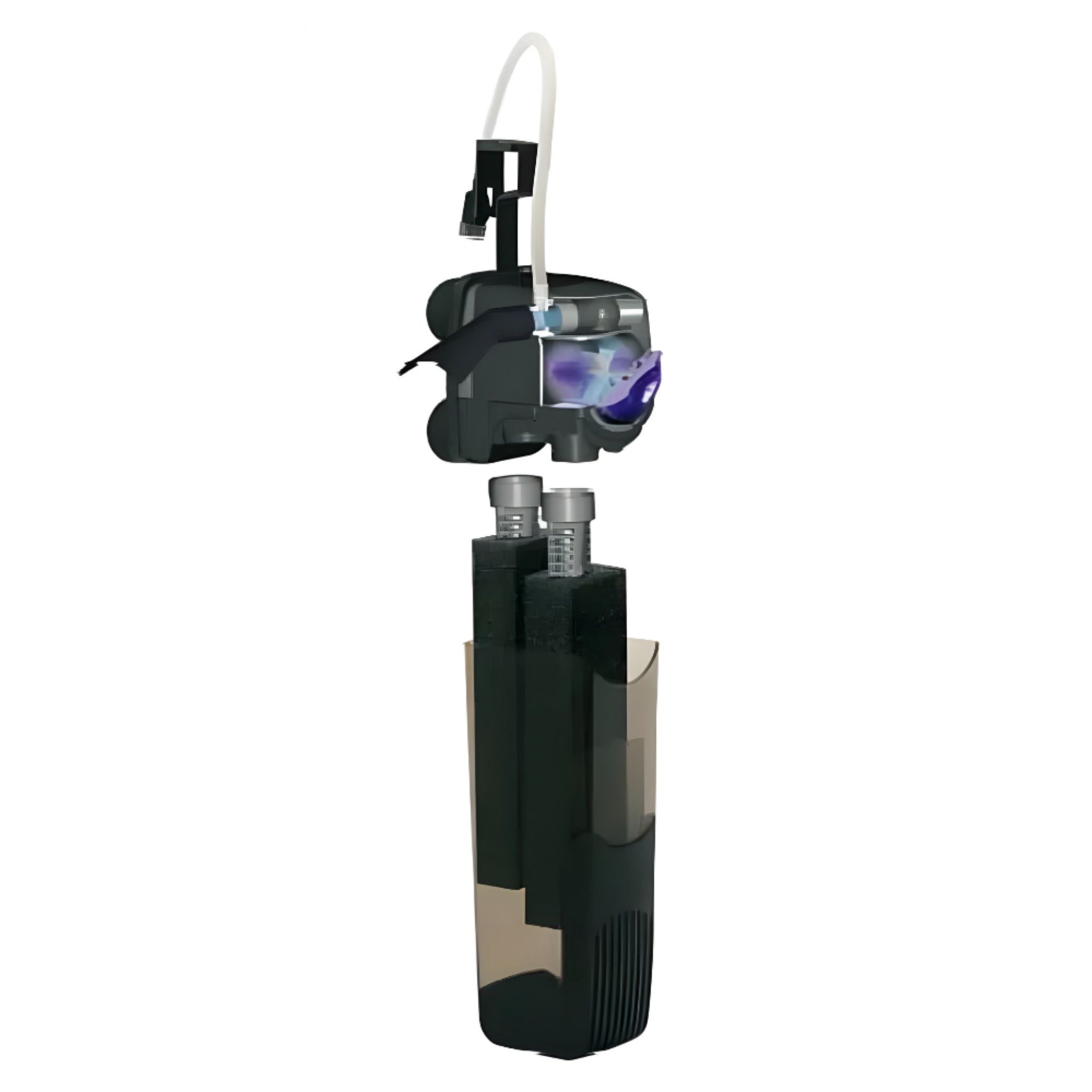 The Aquael Aquarium Uni Internal Filter 750UV is designed to maintain clear and healthy water in aquariums ranging from 200 to 300 litres. It combines mechanical filtration with an integrated UV module that helps reduce algae and harmful microorganisms. The compact design ensures efficient performance while fitting neatly inside the aquarium.