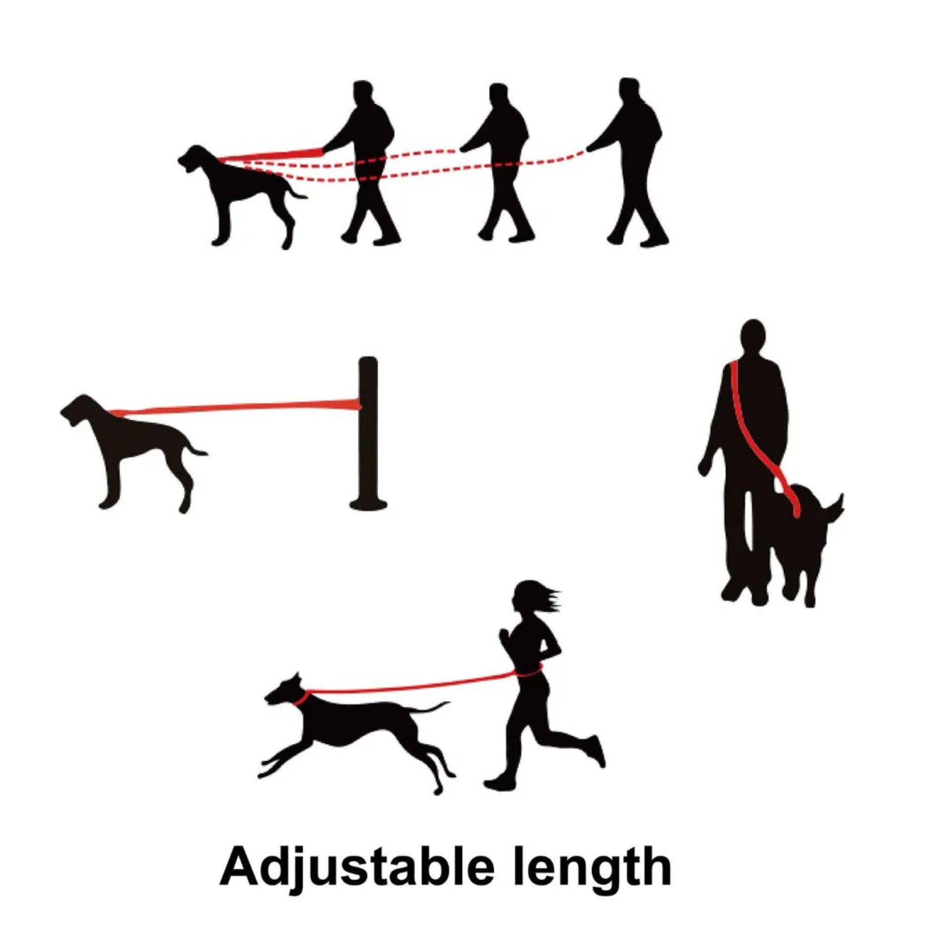 Attach the snap hook to your dog’s harness or collar. Adjust the leash position using the quick-release buckle. Ideal for walks, hikes, and active training.