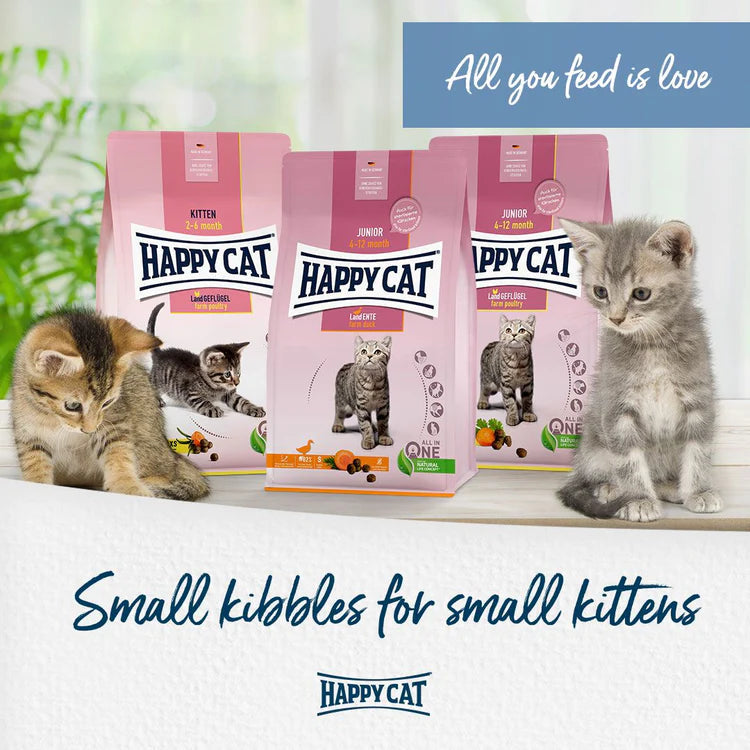 Formulated to support young cats from 4 to 12 months, Happy Cat Junior Farm Poultry provides balanced, high-quality nutrition tailored for healthy growth. Made with easily digestible poultry and enriched with essential vitamins and minerals, it strengthens the immune system while promoting strong bones and a glossy coat.