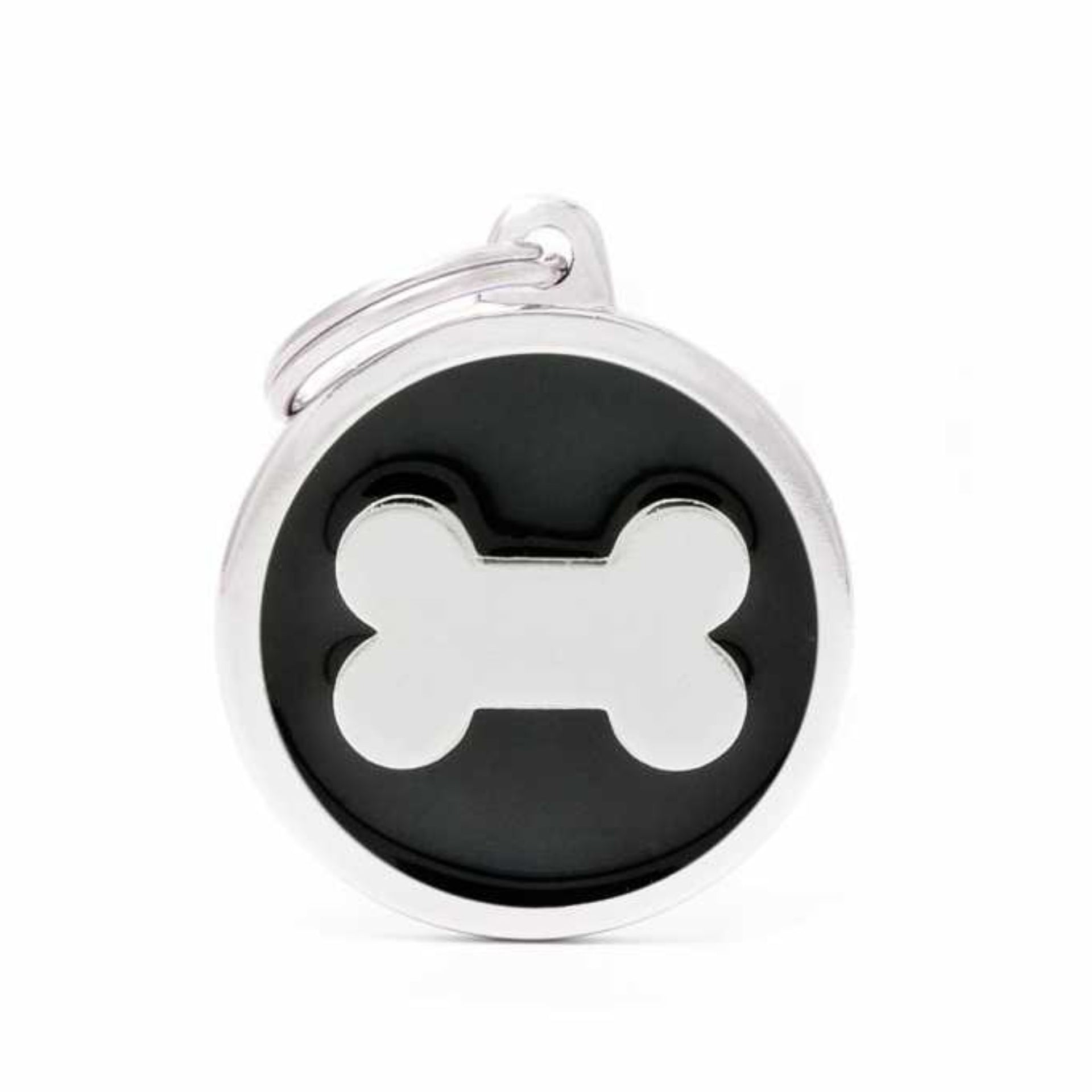 My Family Classic Big Black Circle With Bone Dog ID Tag is a practical and stylish identification accessory designed especially for dogs. The large round shape with a bone detail offers clear space for engraving important contact information. Finished in black this tag blends easily with any dog collar while supporting everyday safety.