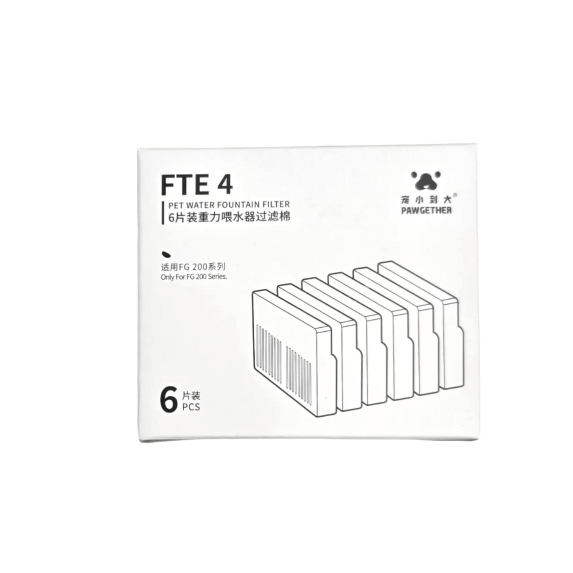 The FTE 4 filter cartridges are a set of 6 water filtration cartridges. Designed for use with the Pawgether FG 200 waterer filtration system, they help improve water quality by removing chlorine, odors, and impurities. Each cartridge provides up to 150 liters of clean water, significantly reducing bottled water costs. This set is an economical and convenient solution for those who care about their pet's health and the quality of their drinking water. Triple filtration. Material: filter cotton, activated carbon, polypropylene.